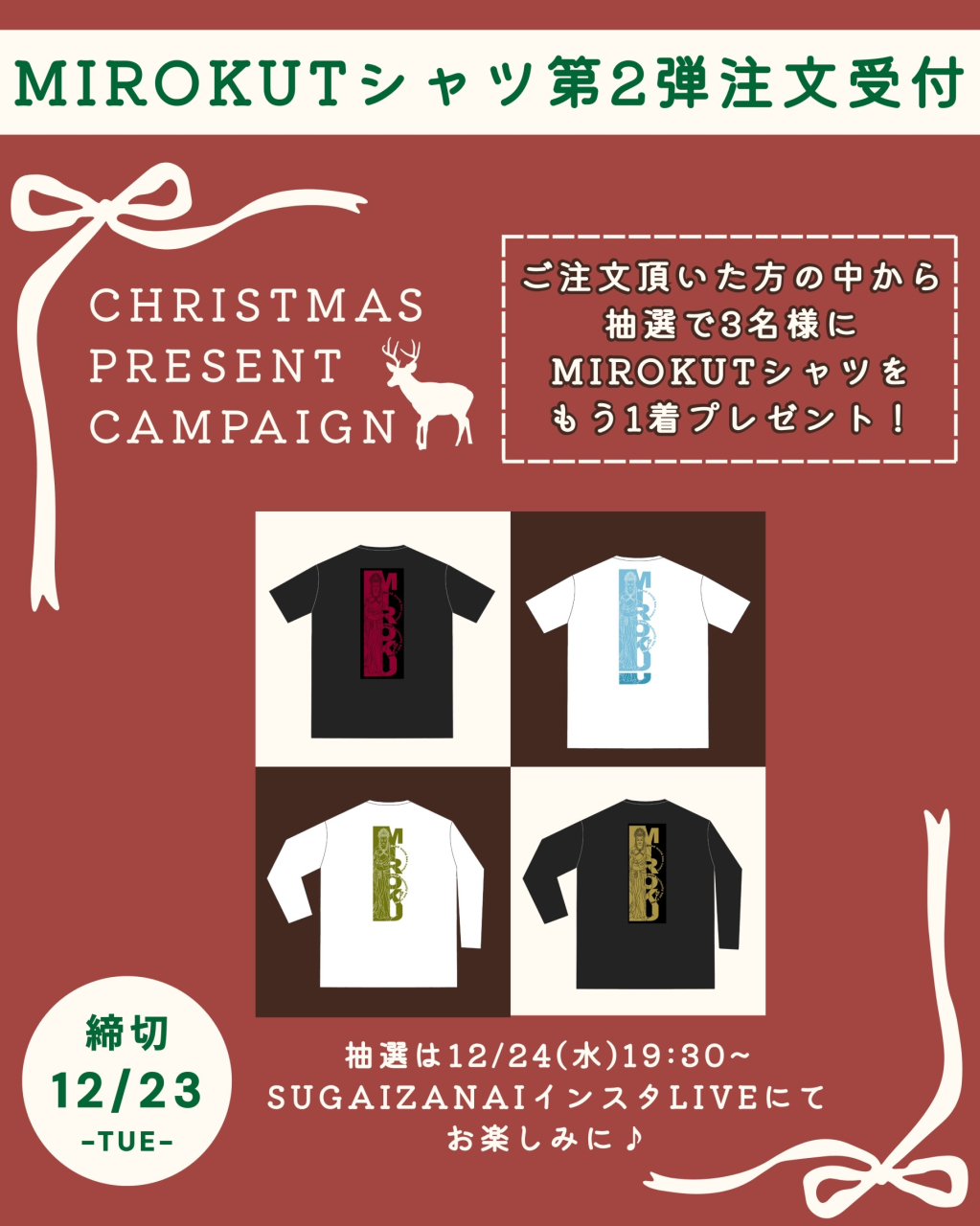 抽選は12月24日(水)19:30~ SUGAIZANAIのインスタLIVEにて行います。
