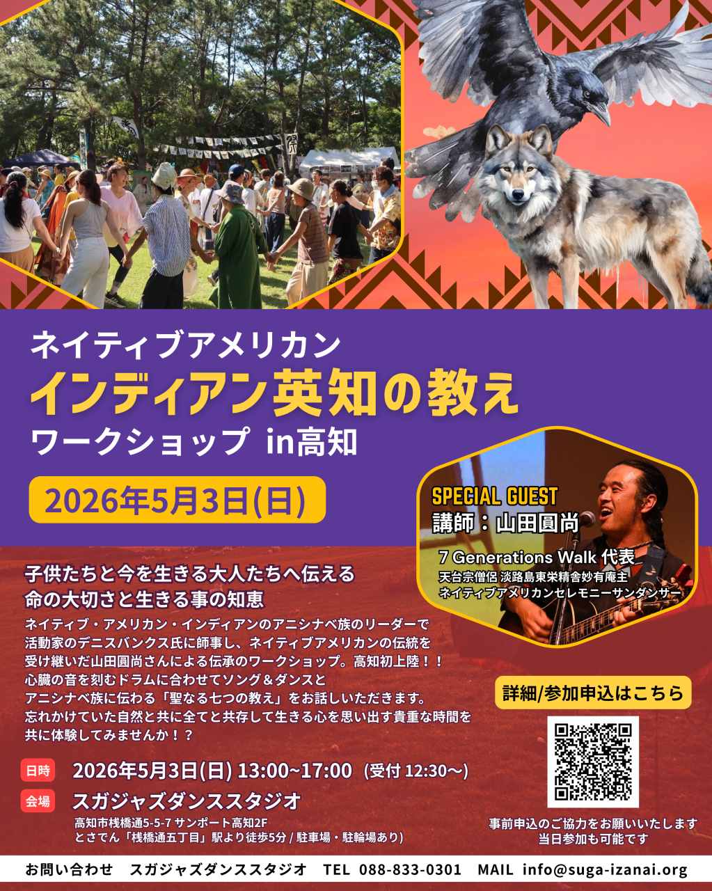 高知初となるネイティブアメリカンの伝統を受け継いだ山田圓尚さんよるスペシャルワークショップの開催が決定しました!!!
